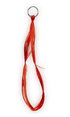 Schlaufe aus seidenartigem Material inkl. Sprengring. Die Hornhechtseide wird anstelle oder ggf. auch zusammen mit einem Drilling am Köder befestigt, damit sich speziell Hornhechte mit ihren kleinen Zähnen bei einer Attacke auf den Köder darin verfangen.