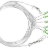 Dieses Naturköder-System besteht aus einem Metallboom, durch den die Schnur läuft. Es handelt sich um eine Durchlaufmontage. Die Gesamtlänge beträgt 2,10m. Es gibt zwei Haken der Größe 11/0 und 8/0, an denen zwei Leuchtoktopusse befestigt sind. Die Schnur hat einen Durchmesser von 0,90mm + 0,80mm.