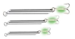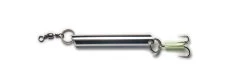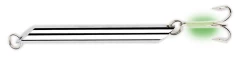 Dieser Pilker hat ein traditionelles Stiftdesign. Er ist ausgestattet mit starkem Sprengring und einem starken Drilling, der mit einem Leuchtschlauch ummandelt ist. Der Pilker ist bleifrei und in Gewcihten von 20g bis 500g verfügbar.