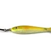 Dieser Pilker hat ein traditionelles Stiftdesign. Er ist ausgestattet mit starkem Sprengring und einem starken Drilling, der mit einem Leuchtschlauch ummandelt ist. Er ist in der Farbe Rot-Gelb verfügbar. Der Pilker ist bleifrei und in Gewichten von 100g bis 500g verfügbar.