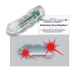 Dies ist ein fängiges Additiv für Vorfächer/Rigs und Montagen. Nur in Verbindung mit Wasser beginnt die Blitzfunktion. Die Blitzdauer reicht weit über 100 Stunden; und somit für viele Angelausfahrten. Das Blitzlicht zieht die Fische in der Umgebung an. Die Montage ist ganz simpel: einfach die beiden bereits vorgeknoteten Clips ins Vorfach einhängen – fertig; – oder das bereits Vorgeknotete abschneiden und in selbst-gebundene Vorfächer montieren. Es stehen vier verschiedene Farben zur Auswahl.