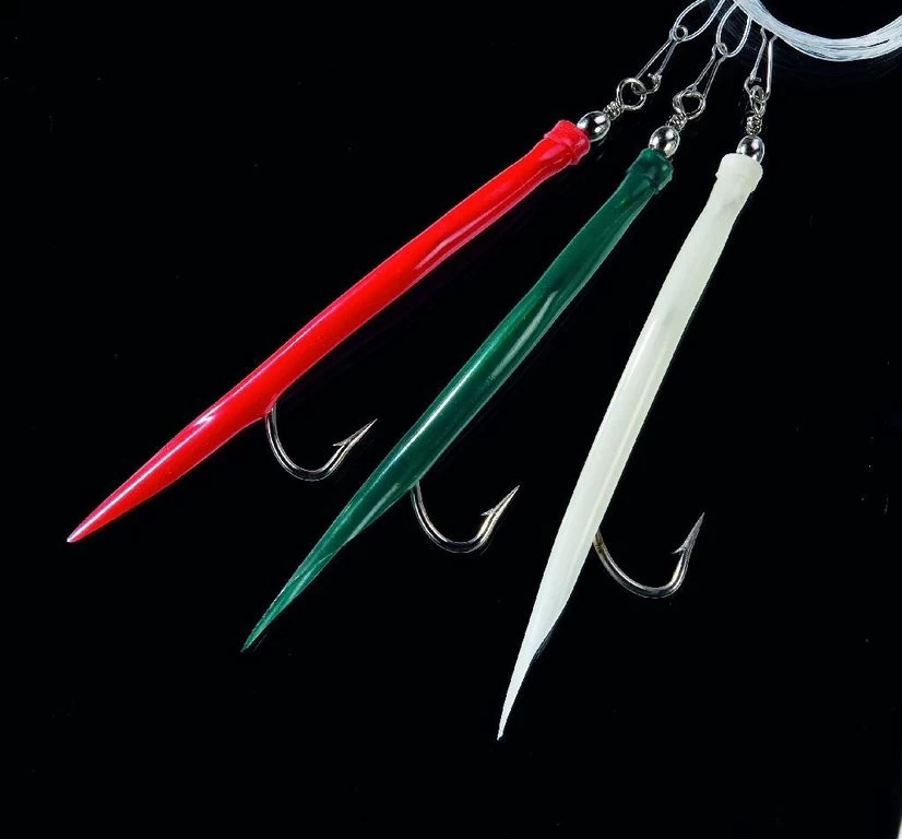 Bei diesem Norway Makk-Vorfach wurden ausgesuchte fängigen Farbvarianten für Norwegen verwendet. Ein Klassiker für Norwegenfahrer! Durch die Karabiner am Beginn der Arme bewegen sich die 3 Seitenarme super im Wasser. Das Vorfach gibt es in den Hakengröße 8/0 und 10/0. Es ist ca. 200cm lang und besteht aus 0,80mm (8/0) bzw. 1,00mm (10/0) starker monofiler Vorfachschnur.