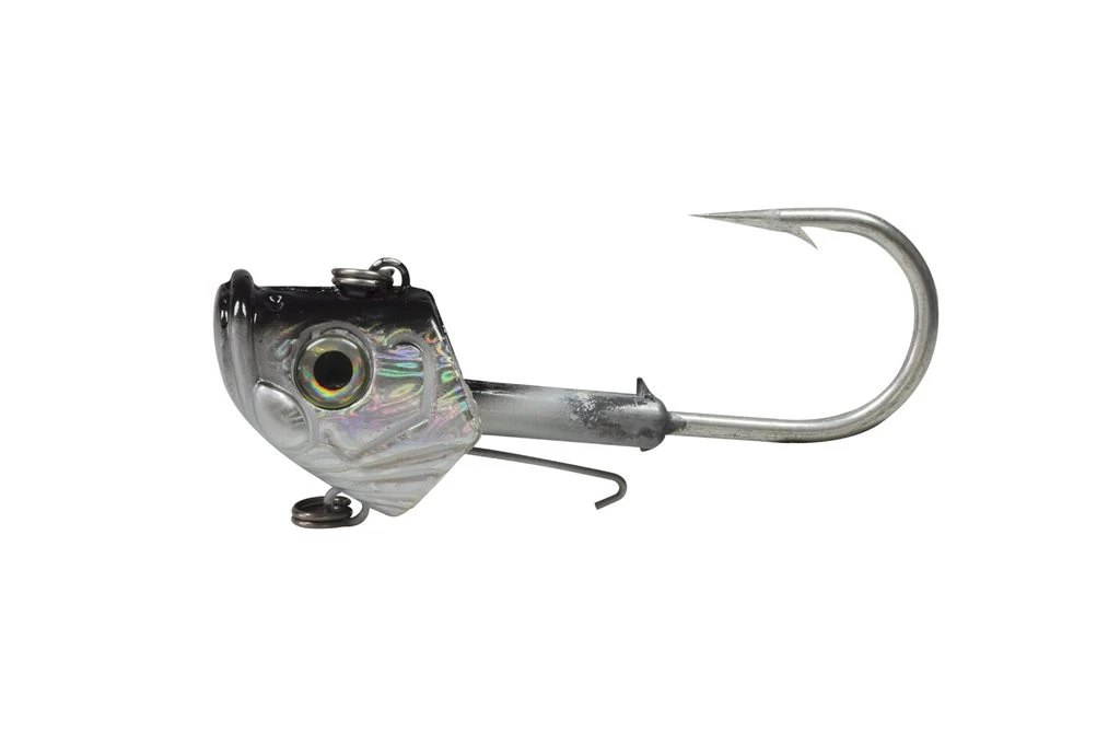 Dieser Jig-Kopf bekannt von den sehr erfolgreichen gleichnamigen Meeres-Shads ist in drei Größen mit jeweils unterschiedlichen Gewichten verfügbar. Der Jigkopf verfügt über einen Baitholder, sowie zwei Ösen für die Anbringung von Stinger-Montagen. Die Ösen sind einmal oben und einmal unten am Jigkopf angebracht. In jeder Öse befindet sich schon ein sehr stabiler Sprengring, sodass nur noch das Vorfach und der Stinger eingehängt werden muss. Die Jig Heads haben eine natürlich silberne Färbung und sind mit 3D Fischaugen beklebt. Das Gewicht ist abhängig von der Hakengröße. Es gibt die drei folgenden Größen