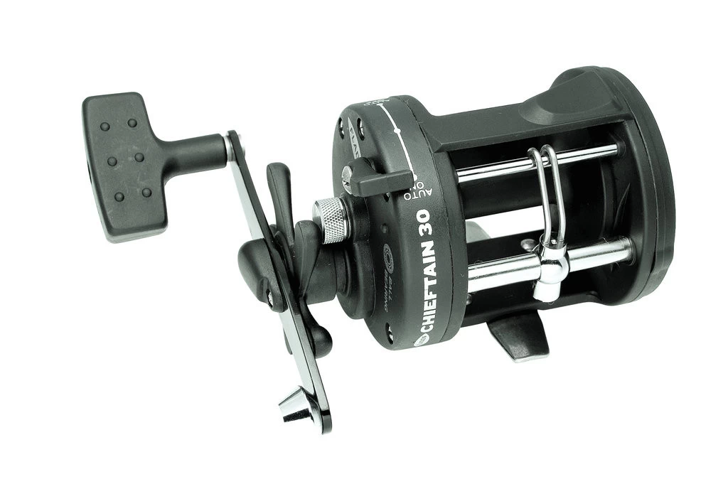 Diese günstige, aber robuste Multirolle verfügt über eine Kugellager, eine Schnurführung einen Schnuralarm und eine große Kurbel. Die Schnurfassung beträgt 270m von 0,45mm starken Schnur. Die Rolle ist mit blauer monofiler Schnur bespult. Die Multirolle hat eine Übersetzung von 3,8: bei einem Gewicht von 424g.