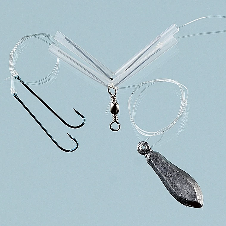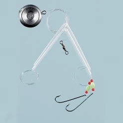 Dieses Vorfach gibt in zwei Varianten. Diese unterscheiden sich anhand der Gewichte. Es gibt dieses Rig mit 30g oder 54g. Beide Vorfächer haben zwei langschenkliche, blaue Haken der Größe 4. Die Hauptschnur hat einen Durchmesser von 0,50mm. Das Rig mit 54g verfügt zusätzlich noch über eine Fluo-Perle und zwei rote Perlen, welche vor dem Haken sitzen. Beide Gewichte dieser Rigs sind bleifrei und somit auch für die Angelei in Ländern zugelassen, in den das Angeln mit Bleiködern verboten ist.