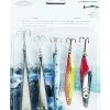 Dieses Set besteht aus drei langgezogenen Blinkern mit einer farbigen Vorderseite und einer silbernen Rückseit. Die im Set sortierten Farben sind Blau-Silber, Rot-Gold und Schwarz-Silber. Dieser Köder ist ideal für Meerforelle und Lachs. Diese Blinker imitieren Sandaale, welche die Beutefische von Lachs und Meerforelle sind. Erhältlich ist dieses Set in Gewichten von 16 oder 25 Gramm.