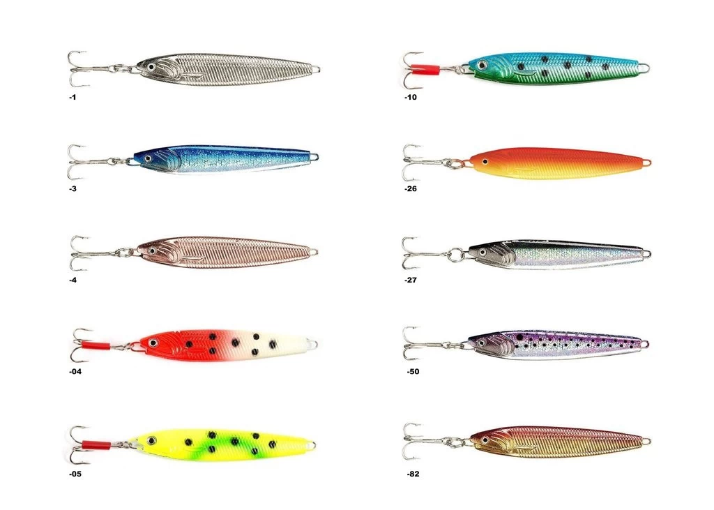 Dieser Pilker in seinen zehn verschiedenen Farben, deckt alle Einsatzzwecke für verschiedene Wetterbedingungen ab. Die Gewichten reichen von 28g bis 300g. Der Pilker ist bleifrei.