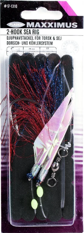 Dieses Premium-Vorfach besteht aus 2 Haken. Es gibt dieses Rig in den Größen 6/0 und 10/0. Hierbei handelt es sich um ein ideales Dorsch- und Köhlersystem.
