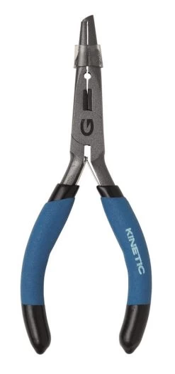 Die Kinetic CS Mini-Sprengringzange ist klein, aber stark. Gefertigt aus Carbonstahl mit einem rutschfesten Griff, bietet diese Zange starken Halt zum einfachen Entfernen von Haken oder zum Quetschülsen klemmen, sowie eine Präzisionsspitze zum einfachen Öffnen von Sprengringen und eine praktische seitliche Schneidbacke.