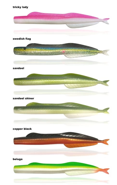 Dies sind Ersatzschwänze für den Rhino Sandaal-Baitholder. Das Set besteht aus zwei Schwänzen. Wenn die Bisse hart und heftig erfolgen, ist eine Reserve an Bord immer eine gute Idee. Der Köder ist 17cm lang und 17g schwer. Natürlich können diese Ersatzschwänze in Sandaalform auch mit herkömmlichen Jigköpfen gefischt werden.