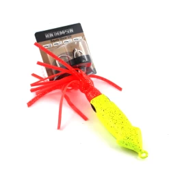 Diese Tintenfisch-Imitation ist ideal zum Jiggen, aber auch zum Schleppen, geeignet. Der Jig verfügt über ultra UV-aktive Lackierung und Tentakeln. Es gibt diesen Jig in den Farben Gelb/Schwarz und Orange/Schwarz. Der Squid-Jigger verfügt über eine starken Salzwasser-Drilling. Es können zusätzlich noch Fischfetzen am Drilling montiert werden, was die Fängigkeit noch erhöht.