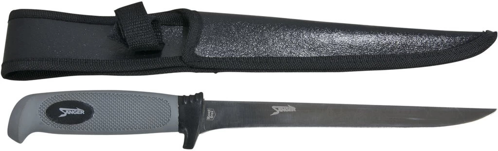 Dieses Filetiermesser hat eine Gesamtlänge von 32cm. Die Klingenlänge beträgt 19,5cm. Das Messer verfügt über eine Stoffscheide und einen rutschfesten Griff.