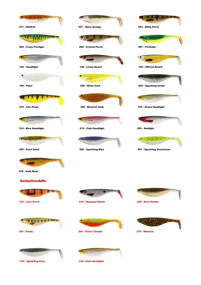 Davon können sich andere Gummifische ein Scheibe abschneiden, denn der ShadTeez ist bis ins kleinste Detail perfekt. Der hohe Körper, die schlanke Schwanzwurzel und der große Schaufelschwanzteller erzeugen schon bei niedriger Geschwindigkeit ein Bewegungsmuster bei dem der Köder stark um die eigene Achse rollt und dabei die Flanken immer wieder aufblitzen lässt – ideal für große Raubfische. Der Köder kann gejiggt, einfach nur gleichmäßig durchgekurbelt (eingeleiert) oder vertikal angeboten werden. Er imitiert einen leicht verwundeten panischen Fisch und über kurz oder lang wird der Rekordfisch zuschlagen! Dieser Shad ist in einer großen Anzahl verschiedener Farben verfügbar. Dadurch kann auf jede erdenkbare Situtation und spezifische Wetterbedingungen optimal reagiert werden. Die Gummifische werden aus der Großpackung verkauft und verpackt. Der Preis für 7cm und 9cm bezieht sich auf 3 Stück, der für 12cm auf 2 Stück und der von 16cm und 19cm auf 1 Stück.